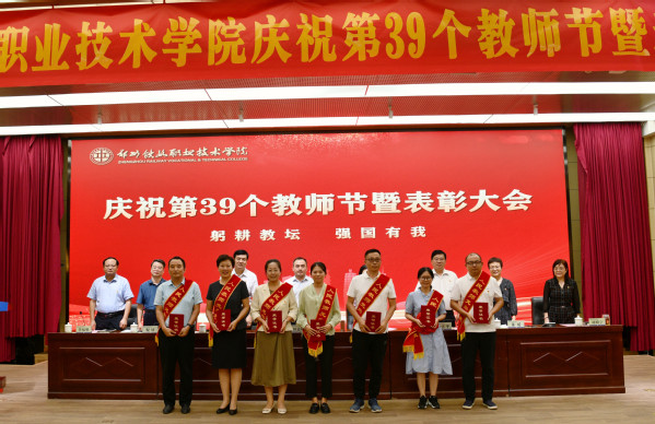 9月8日下午,学校隆重举行庆祝第39个教师节暨表彰大会。全体校领导出席会议,受表彰的先进集体和个人、从教30年教师代表在办公楼第一报告厅主会场参加会议,其他教职工通过网络直播线上参会。