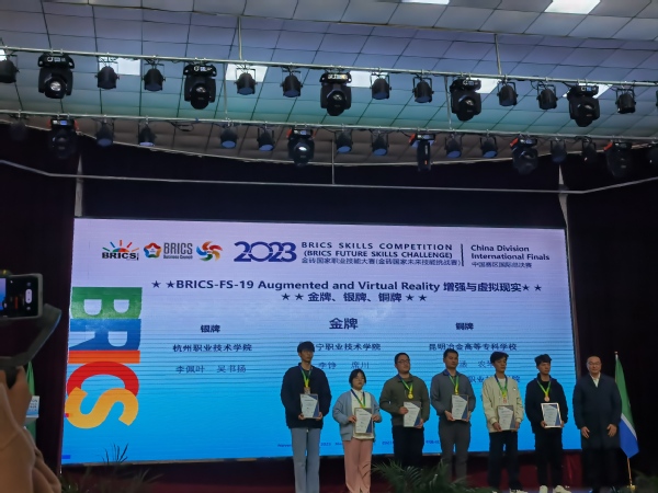 2023金砖职赛包括南非主赛区和中国分赛区,共设置42个竞赛项目。增强与虚拟现实赛项汇集来自全国职业院校的36支参赛队伍,国际参赛队伍14支,参赛选手100名。整个备赛训练过程中,学校高度重视,各方力量全力支持,参赛选手们夜以继日、积极备赛,刻苦钻研、知难而上,充分体现了我校学生过硬的专业技术水平和良好的精神风貌与职业素养。