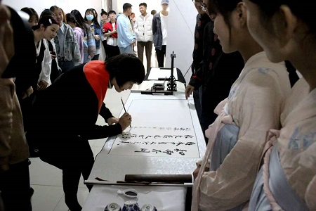 11月10日下午,“中华优秀传统文化”展示活动在新校区八号楼礼仪实训室和智慧旅游实训室举行。高教所张磊处长、商学院张红云书记、刘波主任、商学院全体老师、以及教务处、工会、审计处、公共教学部等部门的老师莅临现场,来自各专业约300名学生参与活动。