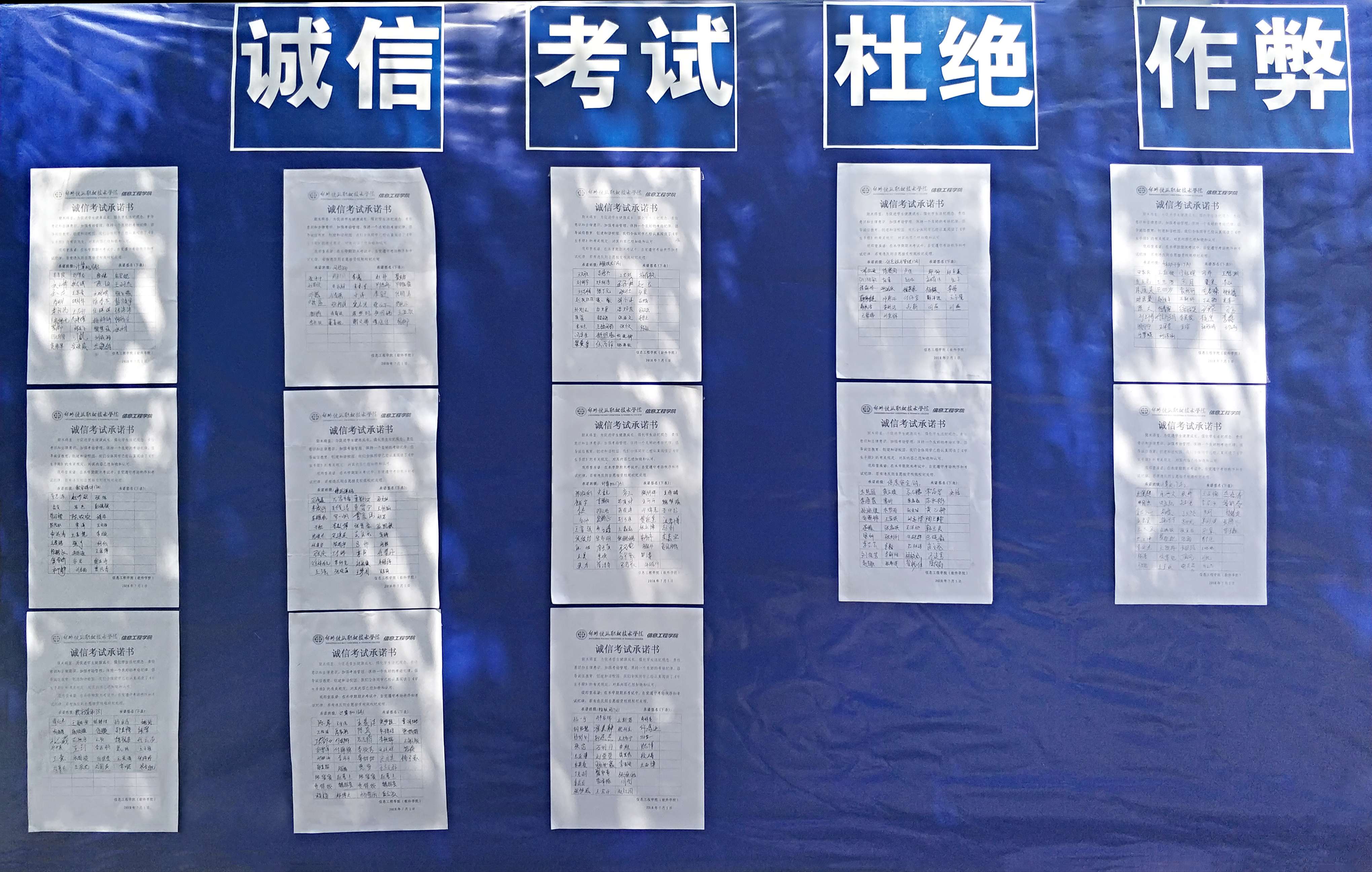 随着考试的临近,为了营造良好的考试氛围、杜绝有失诚信的舞弊行为。7月1日,信息工程学院(软件学院)开展了有关“诚信考试”的系列主题活动。