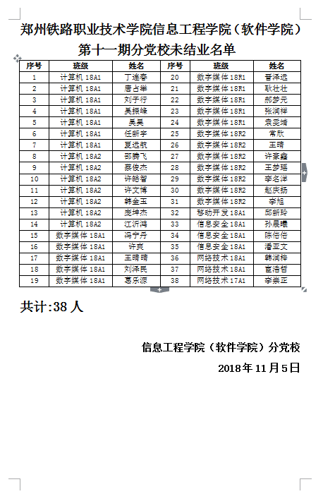 10月17日,信息工程学院(软件学院)在一号楼指定教室进行了第十一期分党校学员结业考试,全体第十一期分党校学员参加了考试。