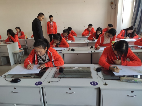 为培养入党积极分子的政治意识,深入推进思想政治教育,11月12日下午,人工智能学院在1号教学楼指定教室举行第13期党校学员结业考试。学院学工办主任马鹏飞、18级辅导员王杏、19级辅导员陈中华莅临考场,巡查考生考试情况。