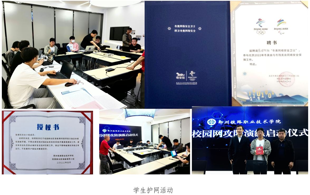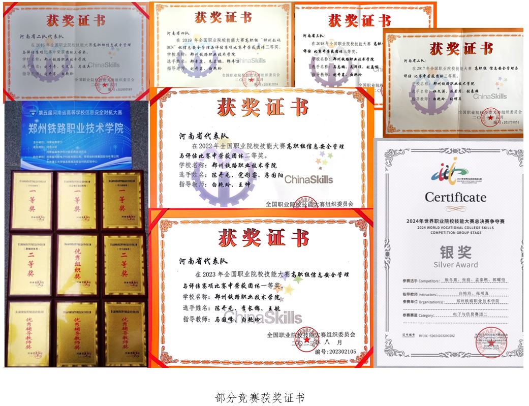 自2016年起,本专业学生连续参加全国职业院校技能大赛信息安全管理与评估赛项,取得了国家一等奖1项、国家二等奖2项、国家三等奖4项的优异成绩,实现了河南省在该赛项国家一等奖“零”的突破。此外,我们还连续参加河南省高等学校信息安全对抗大赛,累计获得河南省一等奖8项、二等奖百余项。教师团队在2023年教学能力比赛中荣获河南省二等奖,在河南省高等学校信息安全对抗大赛中获一等奖1项,二等奖5项。