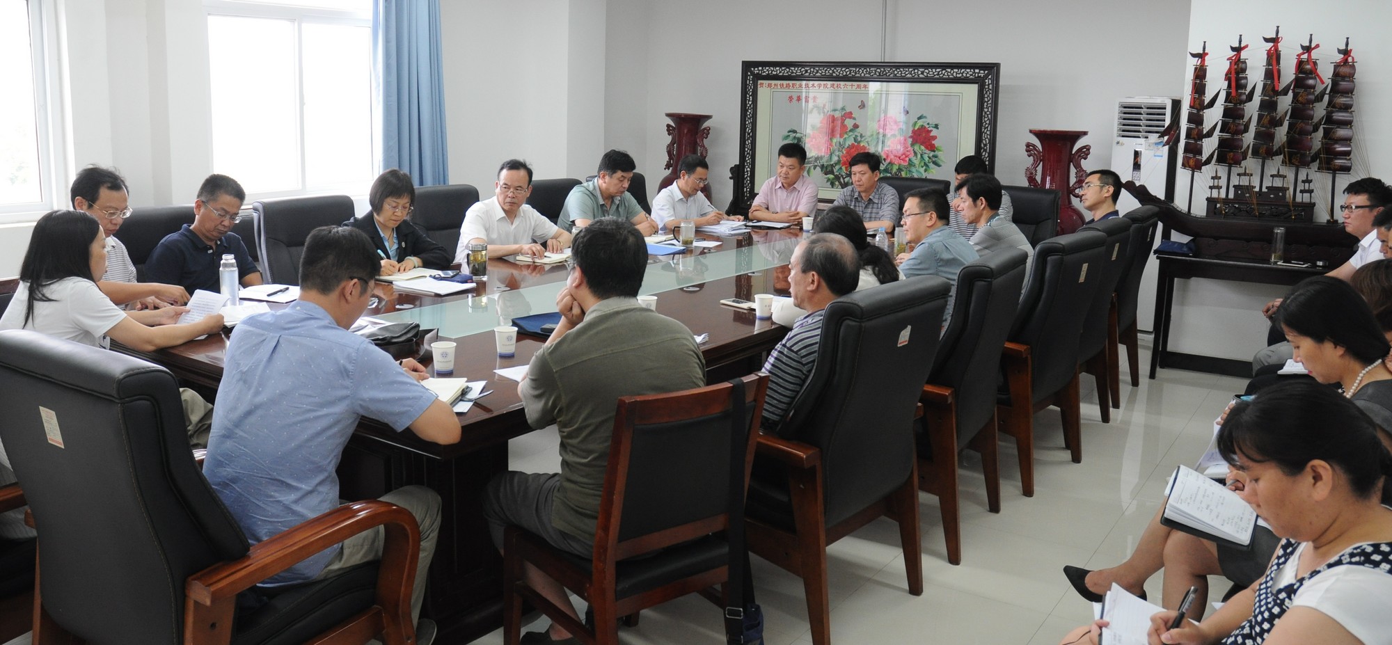 机车车辆学院、电气工程系等十个院系党总支书记先后发言,汇报了本总支“两学一做”学习教育进展情况、特色亮点、取得的成效、存在的主要问题及下一步学习教育安排等情况。自学校“两学一做”学习教育开展以来,各党总支高度重视,全面动员,迅速贯彻落实学校党委部署。一是各总支牢牢把握“学”这个基础。各党总支都充分发挥院系中心组集中学习的引领作用,把学习不断引向深入。电气工程系、国教(欧亚)学院党总支中心组坚持每两周学习一次。党支部(党小组)学习按照学校制定的学习推进计划,认真学习党章党规和习近平总书记系列重要讲话精神,并结合工作实际,创新学习方式。运输管理系成立党的知识巡讲团、开展党建知识演讲比赛和知识竞赛,艺术系筹建党员学习园地,设立党员学习资料柜。各党总支在自学和集中学习的基础上,积极邀请校领导、思政教师为全体党员讲党课,各总支书记到教工和学生支部讲党课,通过层层党课辅导,强化党员意识,增强党性修养。二是各党总支紧紧抓住“做”这个关键。围绕学校新校区建设和搬迁的重点工作,结合院系专业建设、学生管理、师资队伍建设等实际,组织发动广大共产党员到一线去、到艰苦的岗位上去。艺术系党总支要求每位党员签署党员承诺书,建筑工程系设立党员先锋岗,运输管理系设置党员标识牌,亮明党员身份,履行党员义务,增强党员责任感。机电工程系、电气工程系结合暑期搬迁的重点工作,开展了“我为搬迁做贡献”活动。旅游商贸系、医学技术系、药学系充分发挥教师党员的专业优势,开展义务咨询。三是坚持问题导向,对照“四讲四有”,针对个别党员存在的思想上不够重视、不能按时参加集中学习、自学质量不高、工作中拈轻怕重等现象,各总支以支部为单位,开展了“不忘初心,重温入党誓词”活动,每位党员畅谈自己的入党经历和心路历程,很多党员的发言发自肺腑,感人至深。在汇报交流的过程中,一些党总支创新学习教育的方式方法以及取得的实际成效,引起了大家的共鸣,尤其是电气系党总支通过“六个一”“四个学”上下联动统筹推进、运输管理系党总支通过成立督察小组及时纠偏、机电系党总支通过“两个联系”“三个一”做好分类指导等成功做法,为全校基层党组织进一步搞好“两学一做”学习教育提供了有益经验。在新校区搬迁、暑期国(省)培训、教学任务分配、学生技能竞赛指导等急难险重任务中,涌现出的一批主动请战、迎难而上的共产党员为如何争做合格党员树立了典范。