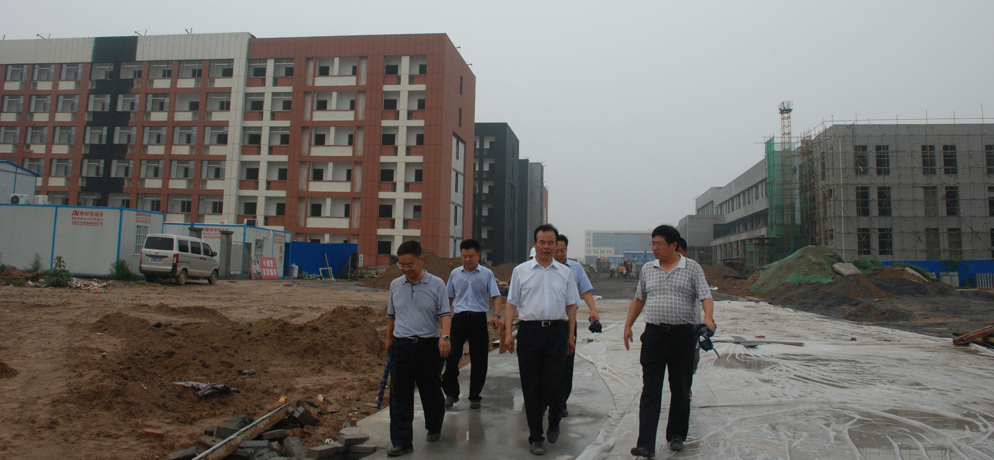 7月18日,校党委书记付强、副校长徐宏平冒雨到新校区建设工地,查看工程进度。