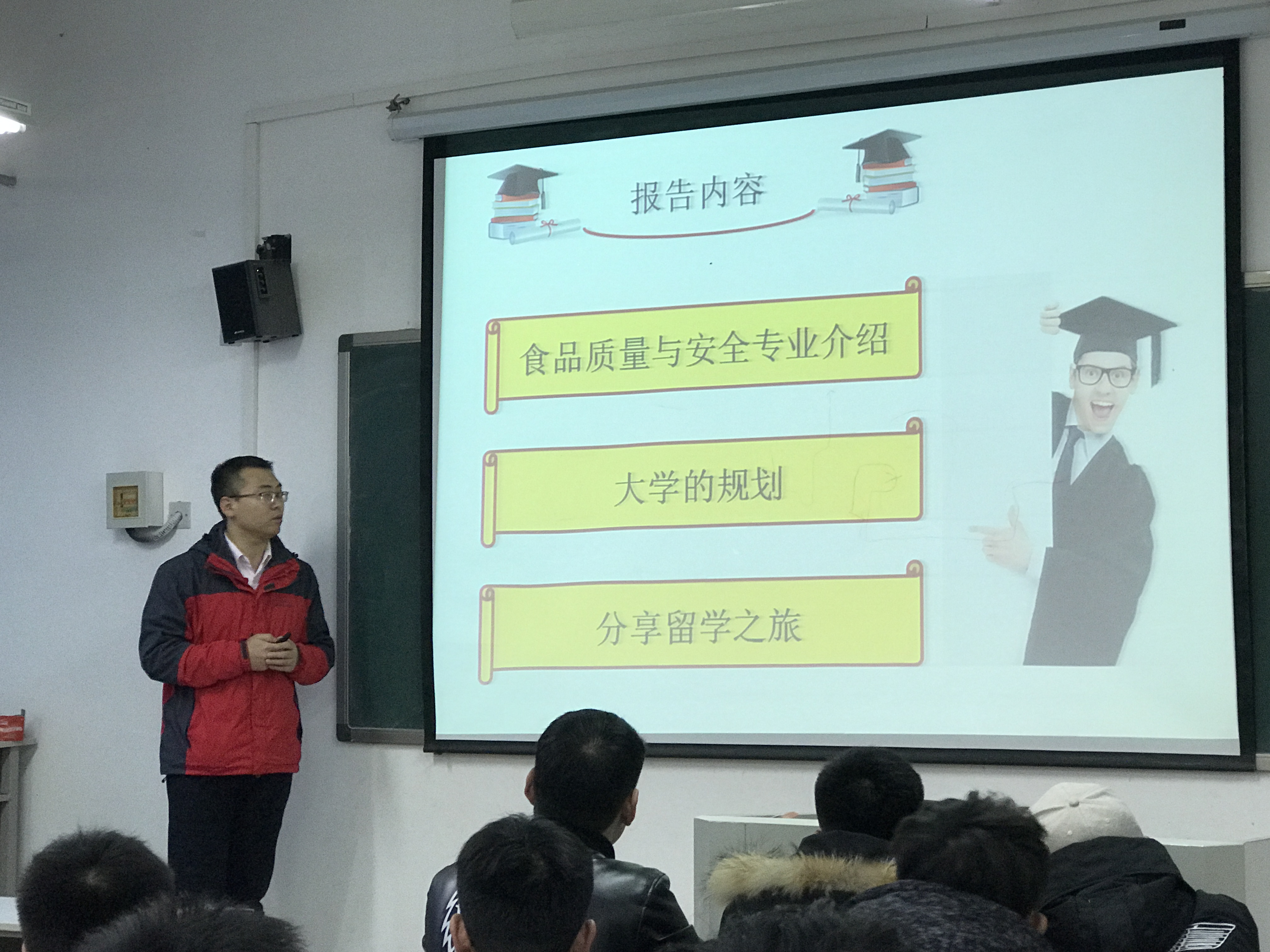 何鸿举教授以《2017,新的开始》为主题,介绍了我国食品质量与安全方面的现状及未来的发展前景。何教授结合自身的学习经历和工作经历对学生的大学生涯及职业生涯规划进行了深入的讲解。